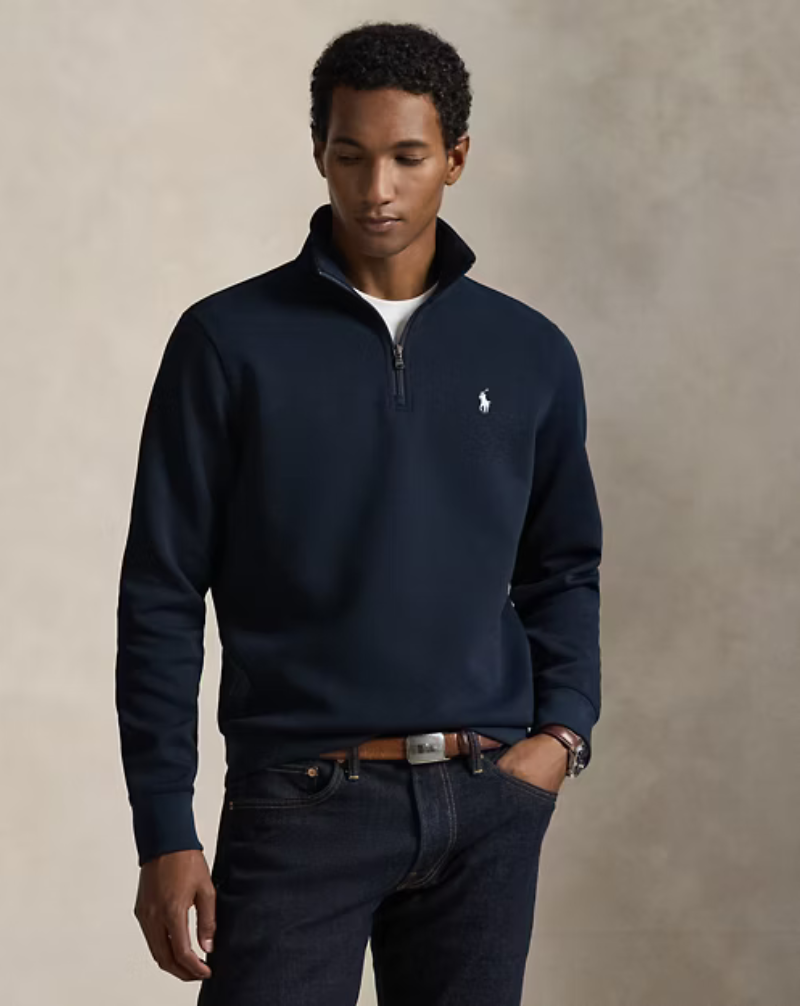 Designed with a mockneck and quarter-zip fastening , it offers versatile layering potential — equally at home over a crisp shirt or a casual tee. The signature embroidered Pony at the chest lends an unmistakable touch of Polo Ralph Lauren heritage, while ribbed cuffs and hem ensure a clean, polished fit.